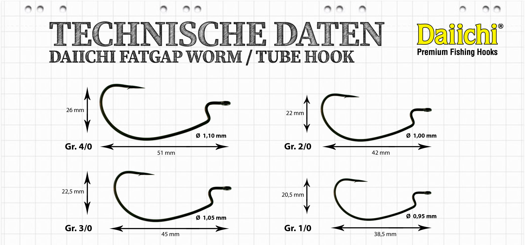 / Daiichi FatGap Worm / Tube Hook, Black Nickel