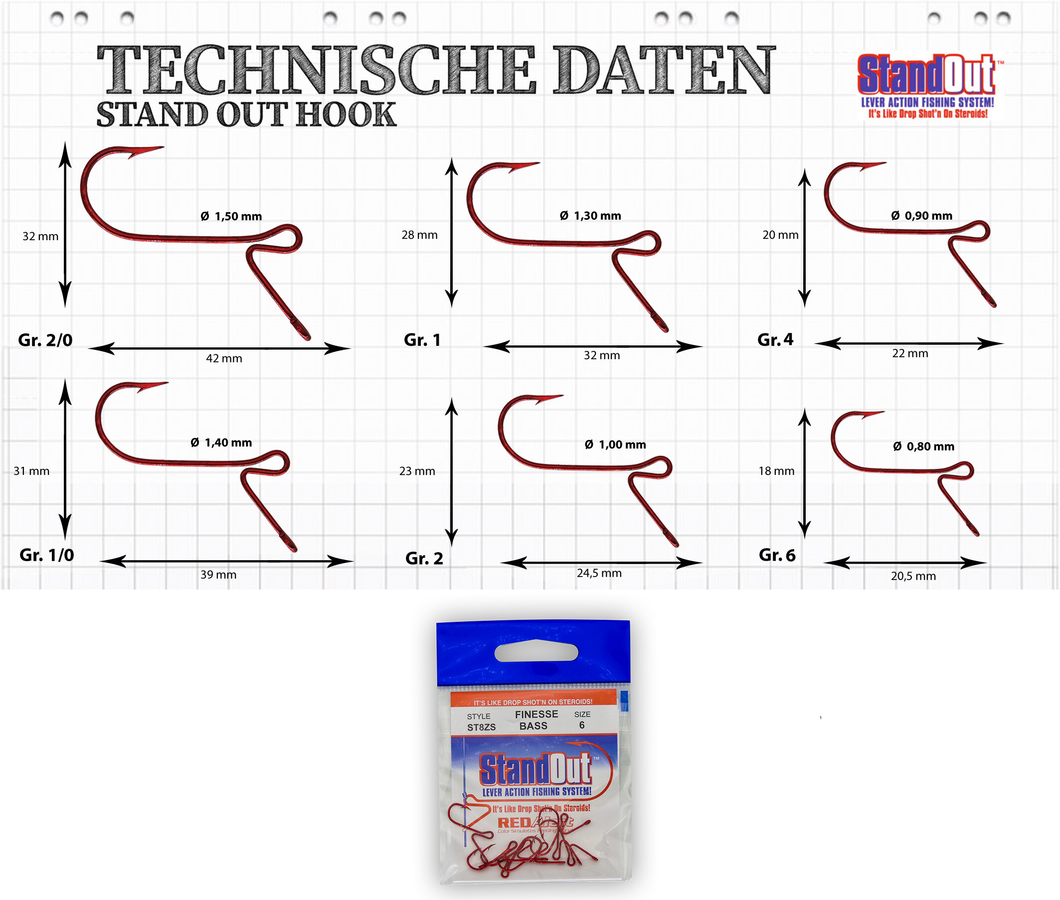 - die Hebelwirkung des Stand Out Hakens bringt mehr Bisse