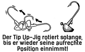 Wundern Sie sich nicht, wenn die Attacken teilweise auf den still am Gewässergrund verharrenden Köder kommen! Egal, ob Schaufelschwanz-, V-Tail, Fork-Tail, Pin-Tail, Worm, Creature, Shad, Twister – der Tip Up Jig verleiht jedem Bait das Quäntchen an Attraktivität, das in schwierigen Angelsituationen oft ausschlaggebend ist.